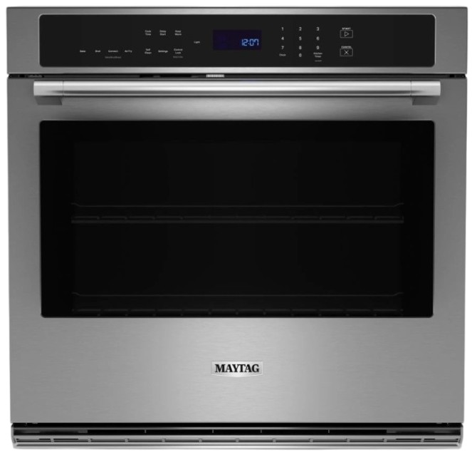 Cook what you want, when you want it in this Maytag® 27 inch single wall oven with air fryer. This wall oven air fryer combo is ready for whatever recipe you throw at it, backed by convenient features like No-Preheat Air Fry, true convection and variable broil.Read More