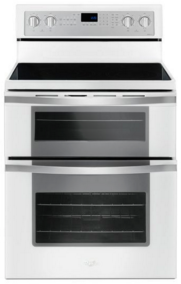 Whirlpool® 30" White Ice Double Oven Freestanding Electric Range with 6.7 cu. ft. total capacity, temperature sensor and easy wipe ceramic glass cooktopRead More